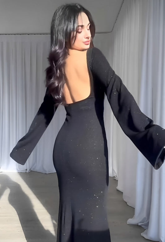 A Robe Long Noir Brillant Dos Carré NAPOLI