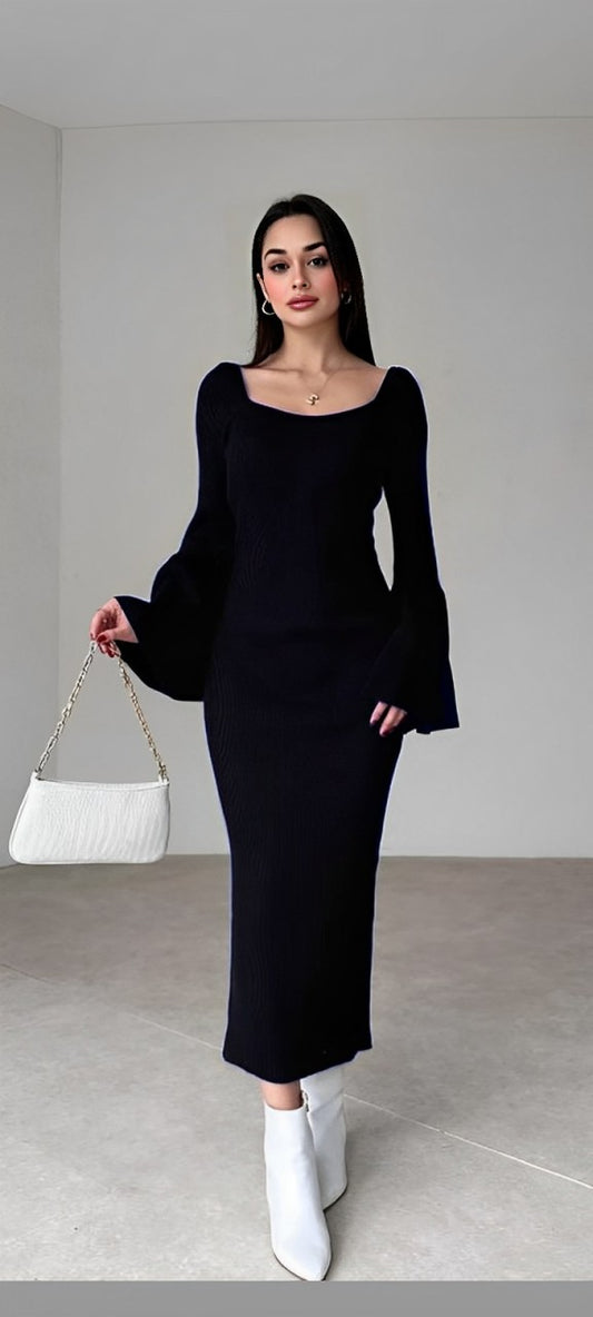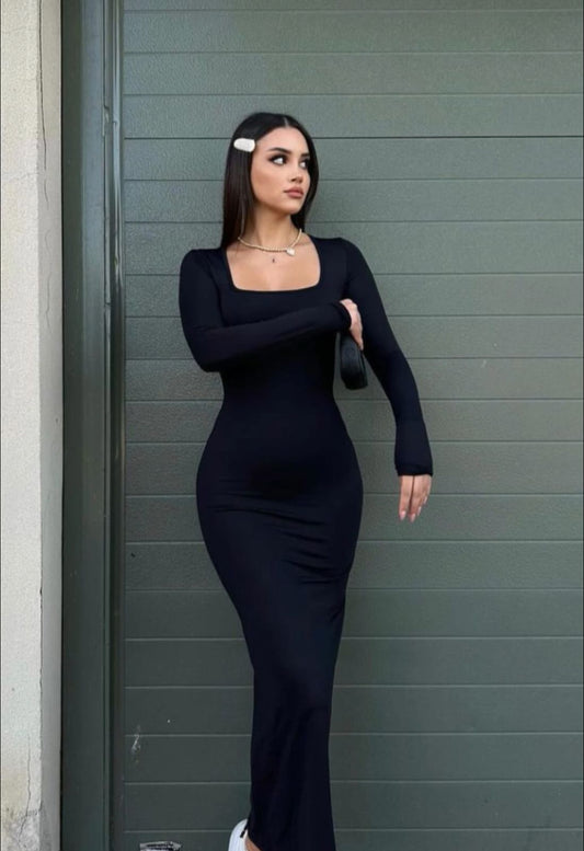 C Robe Long NOIR col carrée AUSTIN