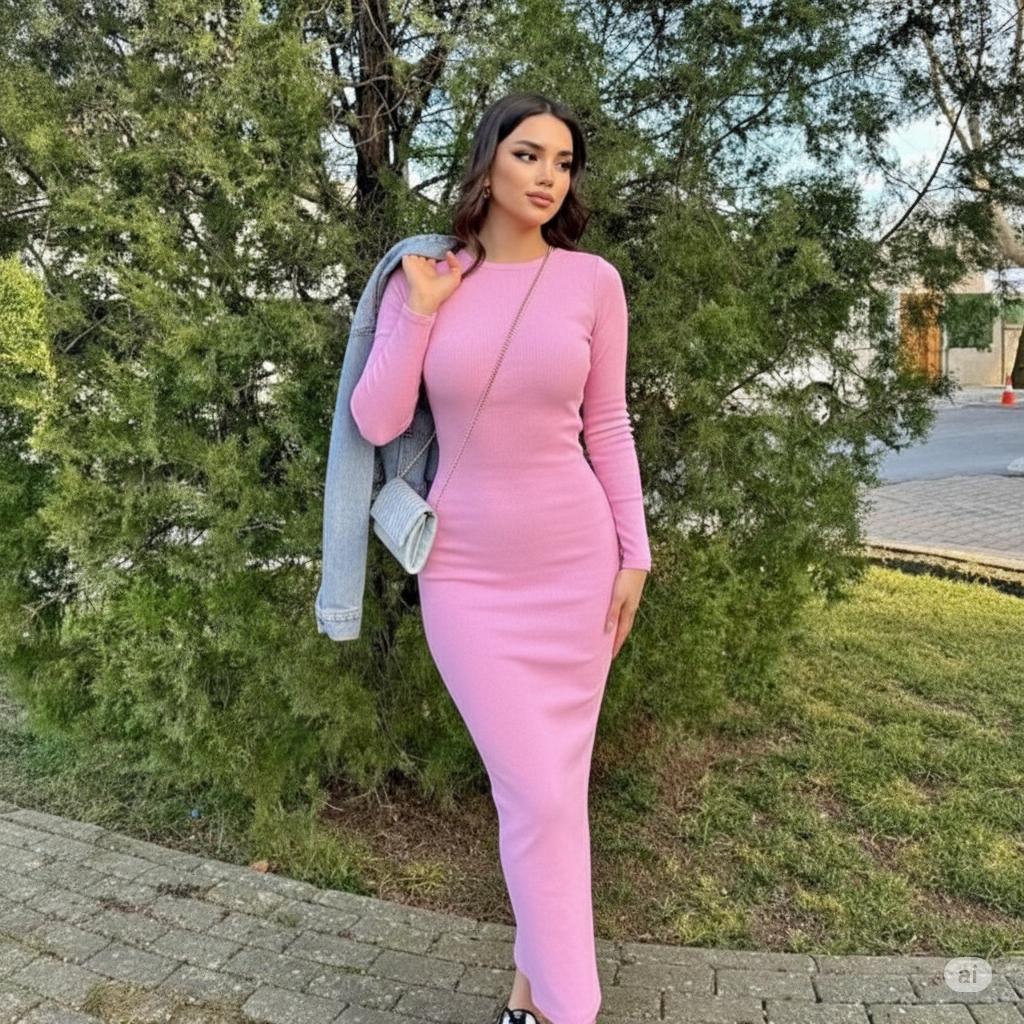 O Robe Long Rose Bébé Col Rond SAN DIEGO